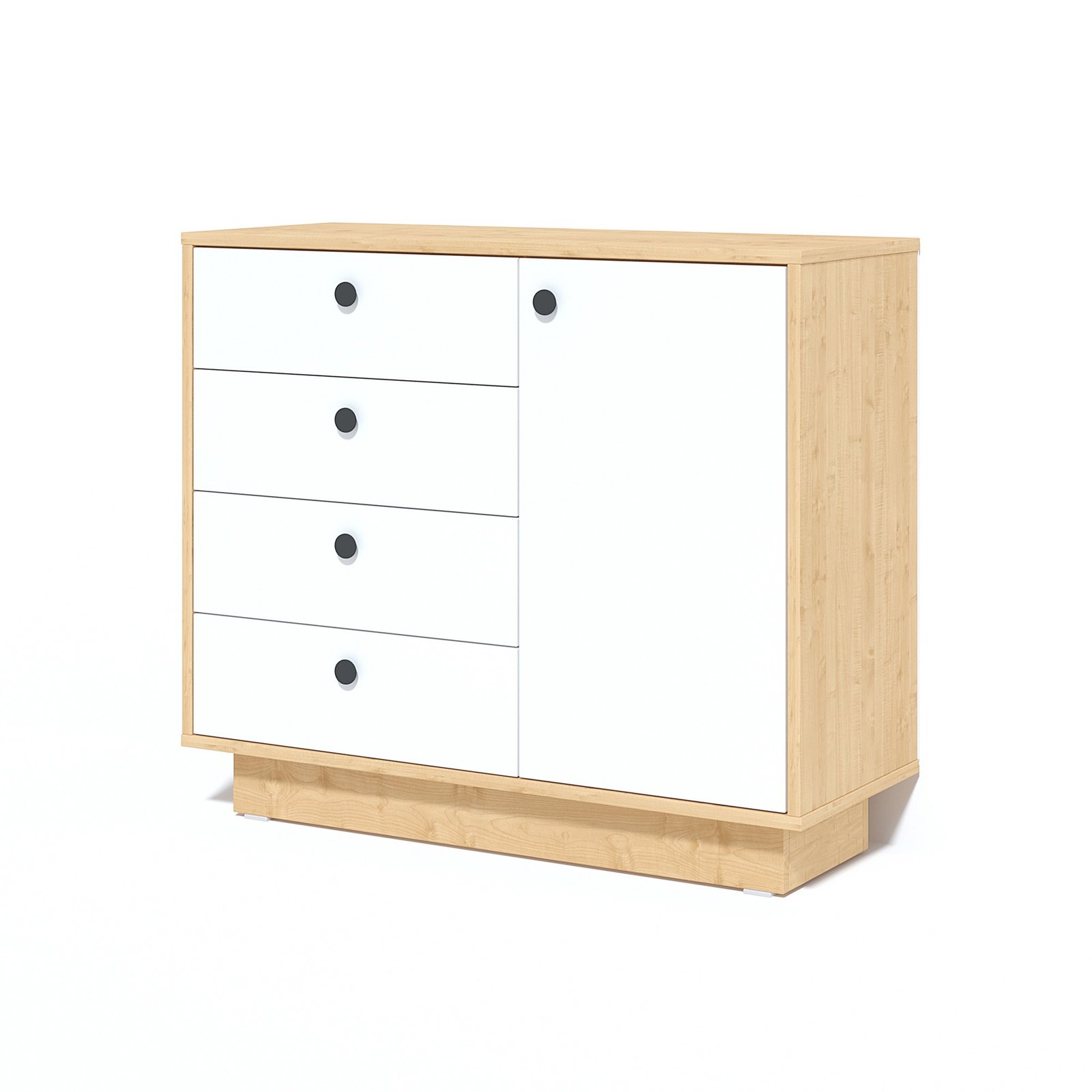 Comoda Alister este o comodă modernă care combină funcționalitatea și designul elegant. Comoda este formată din 4 sertare și o ușă. Alister poate fi un decor minunat pentru interiorul dormitorului sau livingului vostru.